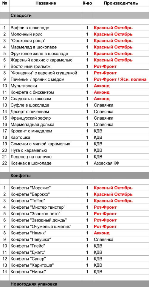 1. Проверить, можно ли внести изменения в состав подарка. Если нет, то скорее всего наборы были собраны еще летом из конфет, произведенных еще раньше