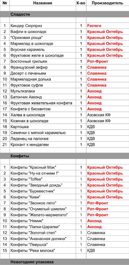 1. Проверить, можно ли внести изменения в состав подарка. Если нет, то скорее всего наборы были собраны еще летом из конфет, произведенных еще раньше