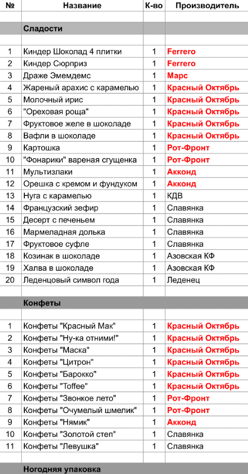 1. Проверить, можно ли внести изменения в состав подарка. Если нет, то скорее всего наборы были собраны еще летом из конфет, произведенных еще раньше